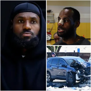 An hour ago in Los Angeles, LeBron James was unexpectedly involved in a shocking accident, sending shockwaves through the sports world. Witnesses reported that his vehicle suddenly swerved, colliding near an intersection, leaving fans in disbelief. The scene grew chaotic as onlookers rushed to film and livestream the incident. Notably, a strange metallic piece was found near the crash site, while a mysterious “black suitcase” was quickly taken away by staff members. Earlier, LeBron had also received a late-night phone call that raised further questions. Was it all just a coincidence, or does it hide secrets yet to be revealed?