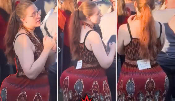 Moments later, someone from the crowd playfully attached another sign to her back that read “Ms New B–,” and the crowd erupted in laughter. Cameras flashed, phones went up, and within minutes, the scene was all over social media. Scarlett, noticing the shift in the audience’s energy, paused the performance and turned to see what had caused the outburst. Realizing what had happened, she laughed along with the crowd, shaking her head before continuing the show like a true professional.