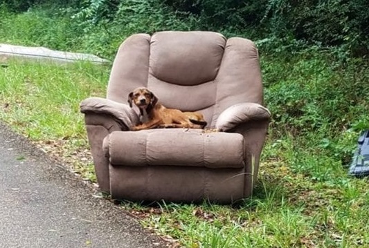 A woman was walking down the street in Brookhaven, Mississippi, when she saw something terrible. A truck dumped a recliner and television on the side of the lane, and inside the recliner was a frightened and starving puppy.