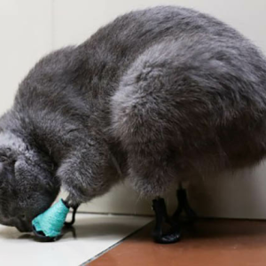 Un gatito perdió sus cuatro patas al enterrarse en la nieve, pero renació con patas artificiales.