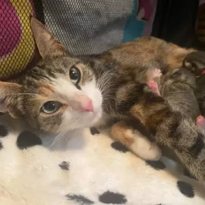 Una gata que necesitaba ayuda para ella y sus gatitos se siente aliviada al verlos prosperar en un entorno seguro. la gata fue rescatada poco antes de dar a luz…