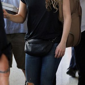 Whenever, Wherever! Shakira carries a guitar strapped to her back as she jets into Miami from Europe