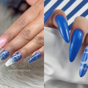 Cobalt blue nails make your hands stand out more beautiful. It can match many unique textures to have more stunning and luxurious nail designs. 2. Light blue nail The light…