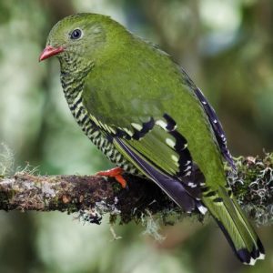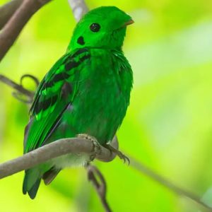 Green Broadbill’s large bill and vibrant green feathers masterfully camouflage it within foliage