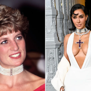 Kim Kardashian accessorizes revealing gown with Princess Diana’s amethyst cross at LACMA gala. See more…