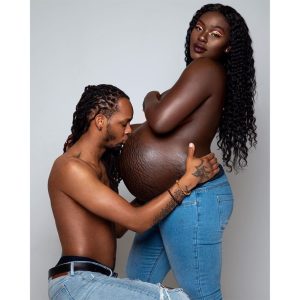 Madɾe negra y Һermosas estrías duranTe una sesión de fotos de maternidad.