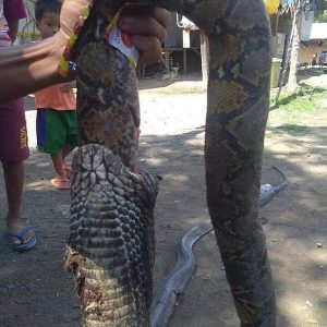 Este es el dolor de estómago en el momento en que se encontró una cobra después de tragarse una pitonisa entera. Residentes aterrorizados vieron la cobra filipina en movimiento en…