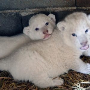 ¡Hermoso momento! En el zoológico de Chipre nacieron dos leones blancos.