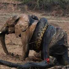 A pesar de sus valientes esfuerzos, el elefante no pudo derrotar a la pitón gigante, cuya fuerza y tamaño eran insuperables.