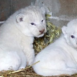 ¡Hermoso momento! En el zoológico de Chipre nacieron dos leones blancos.