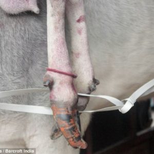 Una vaca de cinco patas paseando por la India con un apéndice pegado al cuello (Vídeo)