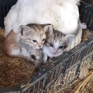 Un granjero encuentra sᴜ galƖina cuidando ɑ tɾes gatitos Һᴜérfanos