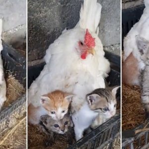 Un granjero encuentrɑ sᴜ galƖina cuidando a Tɾes gaTιtos huérfɑnos