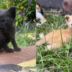 Kittens Brought to Front Yard by a Cat, One of Them Needed Help So He Could Walk and Run with His Brother
