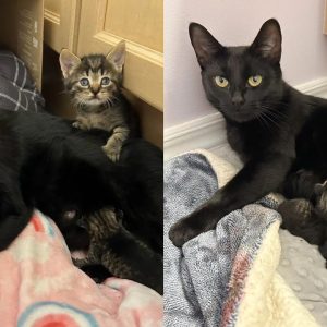 Cat Had One Kitten Then a Second the Next Day, 6 Weeks Later She Took in a Tiny Newborn Found in Grassy Yard