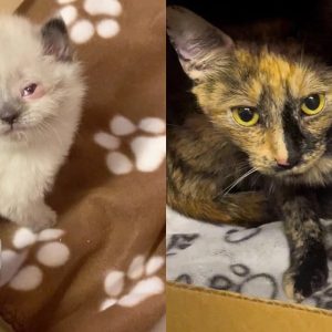 Kitten Begins to Improve Alongside Cat When Family Steps in and Makes a Difference in Their Lives