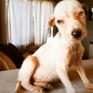 Poor Puppy Abandoned, Scabies and Hungry, Scared and Shivering in the Ruins, Hoping for a Bright Future