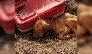 Sick and Skinny Dog Abandoned in a Suitcase by the Roadside