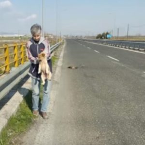 The Girl Who Doesn’t Care About the Danger Saves the Little Dog in Pain, Desperately Holding Its Mother’s Body on the Highway