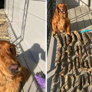 Golden Retriever Shows His Dad How Proud He Is Of His Stick Collection