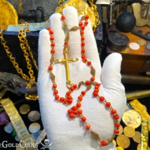Rare 1715 Fleet Gold Coral Rosary Jewelry: A Pirate Treasure Necklace from Mel Fisher’s Atocha