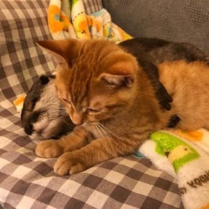 Awww-inspirador: Otter y Kitten se acurrucan a la hora de acostarse, arrasando en Internet