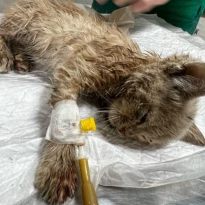 Abandonado en el bosque oscuro, este pequeño gato lucha con una fea herida de supervivencia, aguardando el evento de un milagro inverosímil.