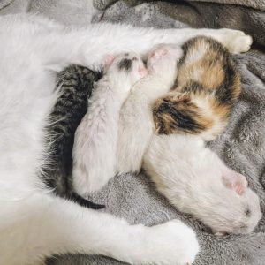 En un día soleado, una sorprendente escena tuvo lugar cuando una hermosa gata blanca hizo su aparición frente a la puerta de una familia. No venía sola, sino acompañada de sus adorables gatitos. Con gran fortuna, esta familia decidió acoger a la madre y sus pequeños, brindándoles un hogar seguro y amoroso. A partir de ahora, estos felinos no tendrán que enfrentarse a la intemperie ni sufrirán de hambre o sed. – sallnews