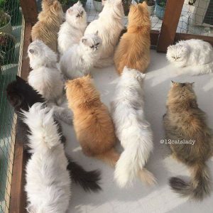 Si crees que la vida de una mujer que tiene 3 o más hijos es un caos, solo mira a esta mamá gato. Tiene 12 gatos, pero todavía los alimenta…