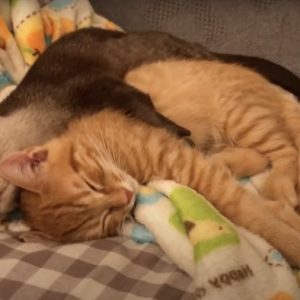 Un gato amoroso abraza a un gatito huérfano, impartiendo el arte de abrazar y demostrando el cuidado maternal en una exhibición conmovedora todos los días.