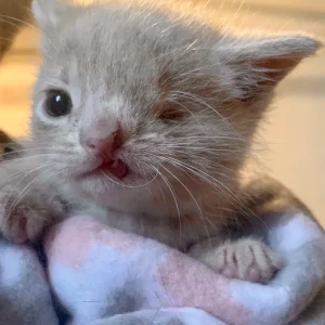 A pesar de tener deformidades faciales, este pequeño gato siempre muestra una sonrisa feliz en su rostro.