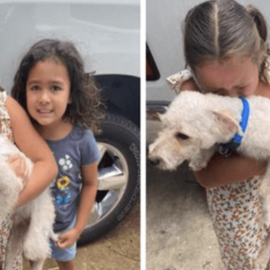 ¡lagrimas de alegria! La niña se desborda de felicidad cuando finalmente encuentran a su perro perdido, un reencuentro conmovedor.