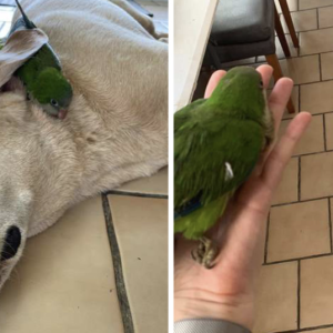 Un bondadoso cachorro llamado Hiro ha salvado la vida de un loro bebé en una hermosa muestra de compasión y determinación. el cachorro estaba dando vueltas en el patio trasero…