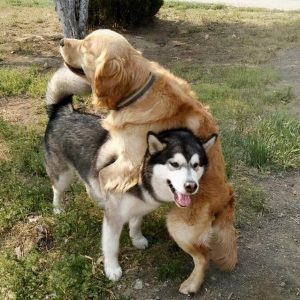 Husky dedicado se libera de su residencia para reunirse con su querido compañero