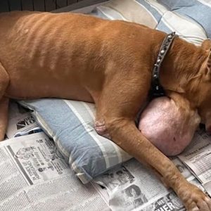 Descubriendo un canino oculto: encuentro con un perro con un enorme tumor en el cuello en medio de la agitación de la construcción