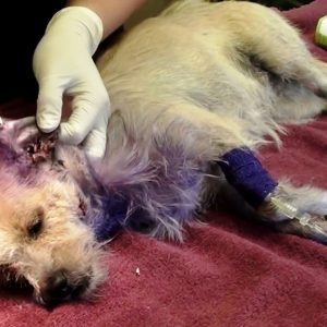 ¡Un veterinario experimentado en Vet Ranch, una clínica de animales, quedó impactado después de ver a una perrita llamada Violet, con pelaje morado y cubierta con muchas heridas por mordeduras!…