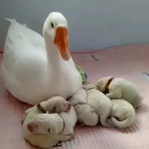 Una tierna oca se convierte en niñera del perro de su mejor amiga, una entrañable muestra de amistad.