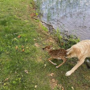 Se desarrolla un momento adorable cuando un garabato dorado llamado Harley rescata a un cervatillo bebé de ahogarse en un lago de Virginia, mostrando los instintos heroicos y la amabilidad de nuestros amigos peludos.