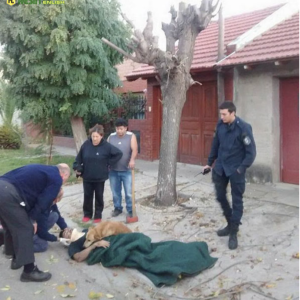 la amable mujer se sorprendió mucho cuando vio accidentalmente la cabeza del pobre perro clavada en el hierro, gritó pidiendo ayuda en el dolor y la desesperanza