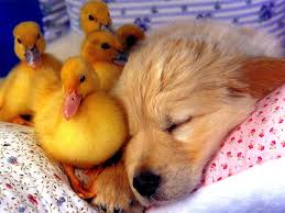 Sé testigo de la cautivadora admiración del perro por los patitos, un espectáculo reconfortante para la vista.
