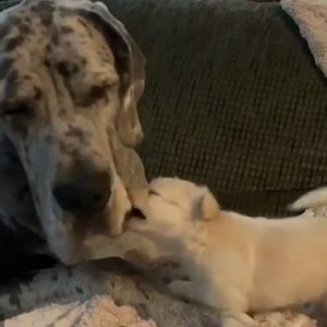 Un pequeño cachorro chihuahua y un gran danés gigante han formado un vínculo inesperado después de conocerse en un centro de rescate de animales. la linda amistad comenzó cuando Shirley…