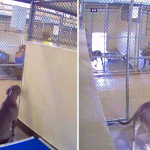 Perrita abandonada en un refugio aguanta todo un año observando a las personas que pasan por alto su perrera