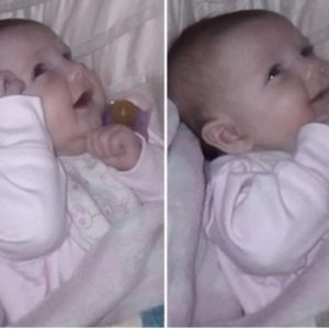 Bonjour papa! Moment réconfortant : une petite fille de six semaines répond à la salutation de son père