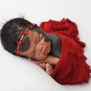 “La beauté d’un petit ange : un bébé né avec de belles taches de naissance noires sur son visage et son corps” q.