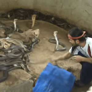 el hombre tiene 1000 cobras como mascota y en cada show elige una nueva cobra