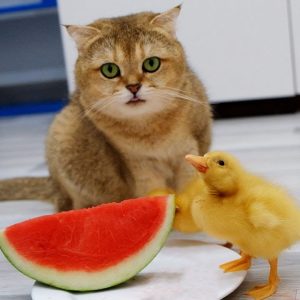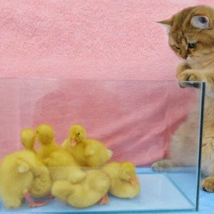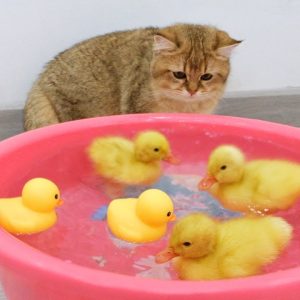 Los gatos conocen a los patitos. son tan curiosos 😂