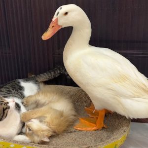 ¡Pato está muy enojado 💢! el gatito no quiere dormir con el pato. videos de animales tiernos