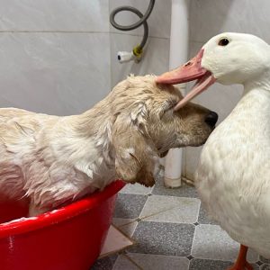 ¿Cómo reaccionan los patos al ver a un perro bañarse? Lindo e interesante video de animales