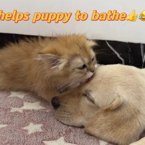el cachorro pensó que el patito se estaba ahogando, ¡así que valientemente rescató al patito! Labrador inteligente👍