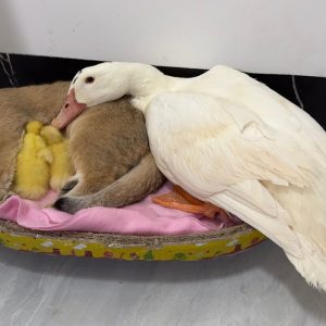 ¡Papá Pato encontró al patito! Madre calificada de gatitos, cuidando patitos.